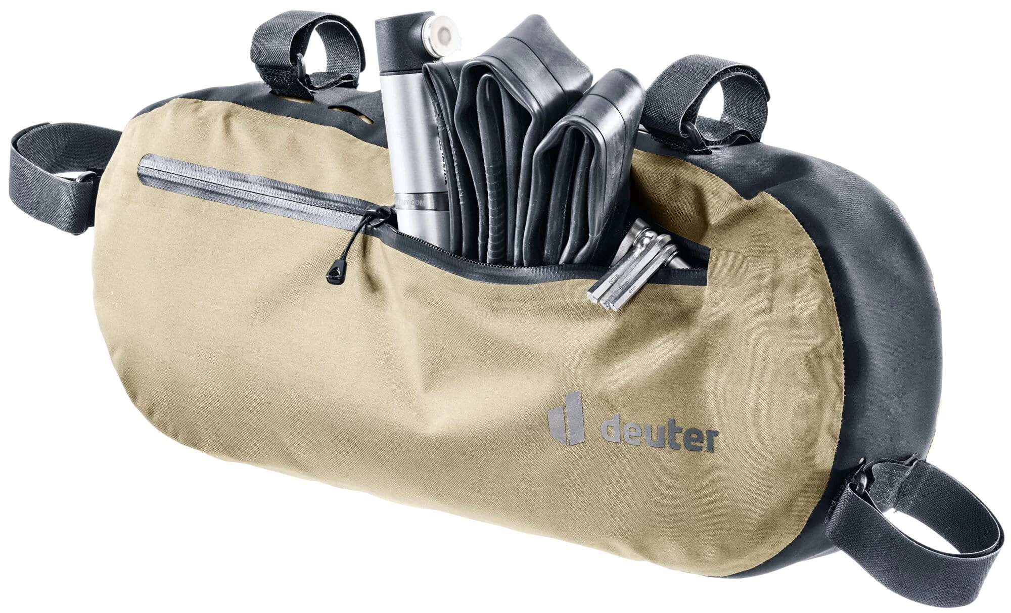 Die robusten Gurtbänder der Fahrradtaschen lassen sich über Klettverschlüsse anpassen und sorgen für einen sicheren Halt. Durch die Verwendung von leichten Materialien eignet sich die Tasche auch für Carbon-Fahrräder. Mitgelieferte Distanzstücke ermöglichen die Montage an einer Vielzahl von Lenkern.