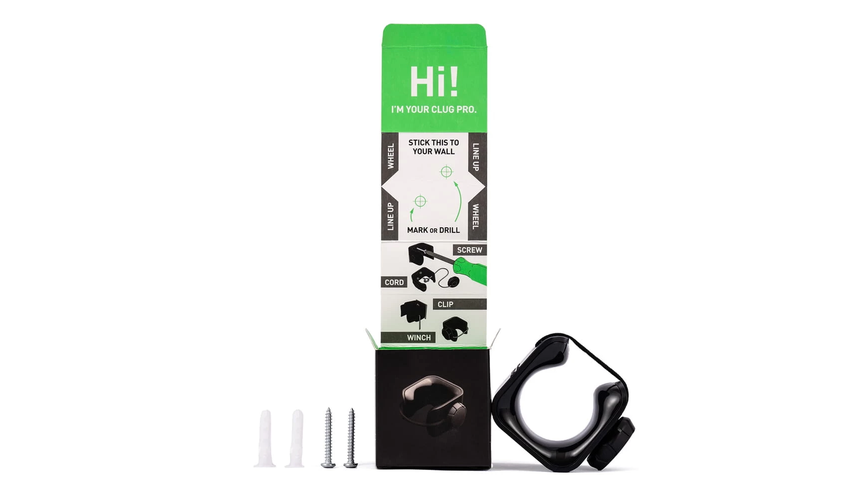 Es ist super einfach! Befolge nur die Anleitung in der Schachtel um die einzelnen Schritte zu sehen. CLUG wird mit zwei Schrauben und Dübeln an der Wand befestigt. Schrauben und Dübel sind mit dabei. Du bist in Nullkommanichts fertig und kannst CLUG’en.